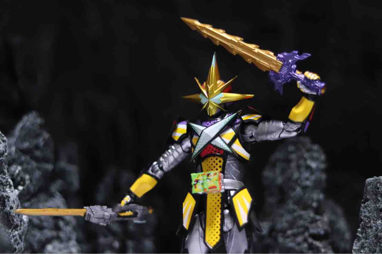 それで、その状態から追加された強化形態がこのエックスソードマン。シャドー+剣という組み合わせの状態でライドブックを装填することで最光シャドーにアーマーが追加され、意識が完全にボディ側に移行し、光剛剣最光は本当にただの剣に。