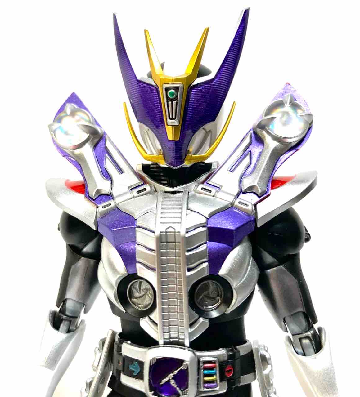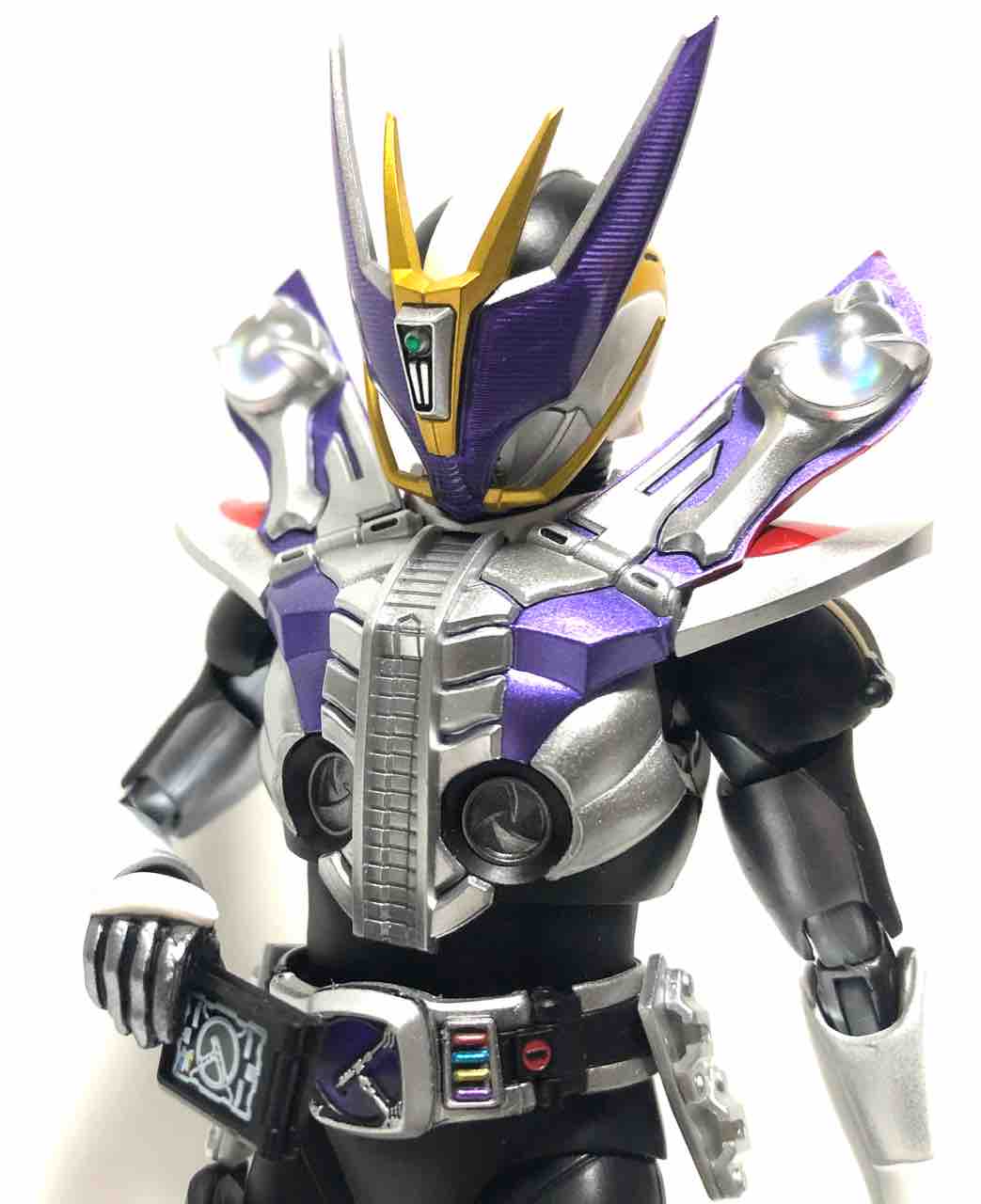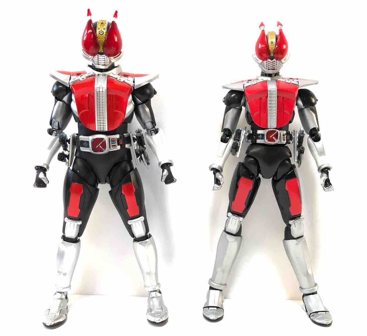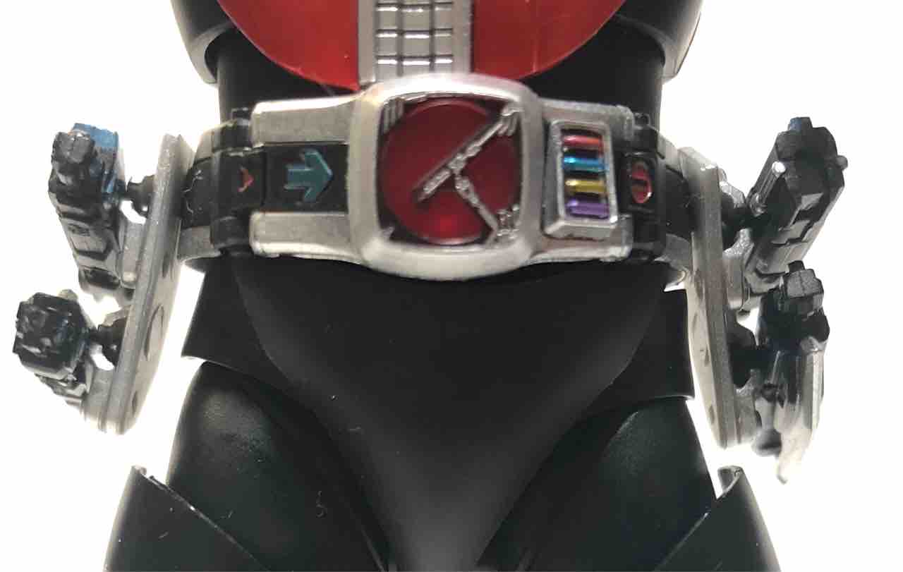 バックルと膝パーツは色だけで、胸と電仮面だけ変わってここまで印象がガラッと代わるのもスゴイなぁ。