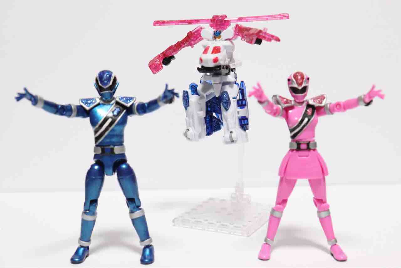 オプションパーツセットを1箱買うだけで全員分の交換手首と武器が手に入るのは嬉しい。そして合体させることでキラメイバスターにもなるという。ここは明確にルパパトから進化した点など思います。