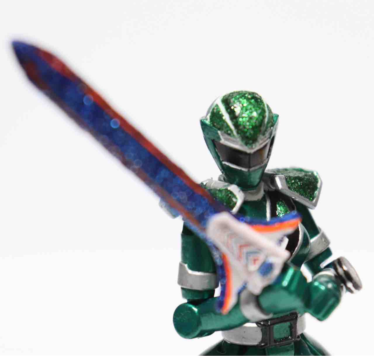 ソードの剣部分には、クリアーブルーにラメパウダー混ぜたものを塗っています。そのままの成形色だと大分ショボいから……ry