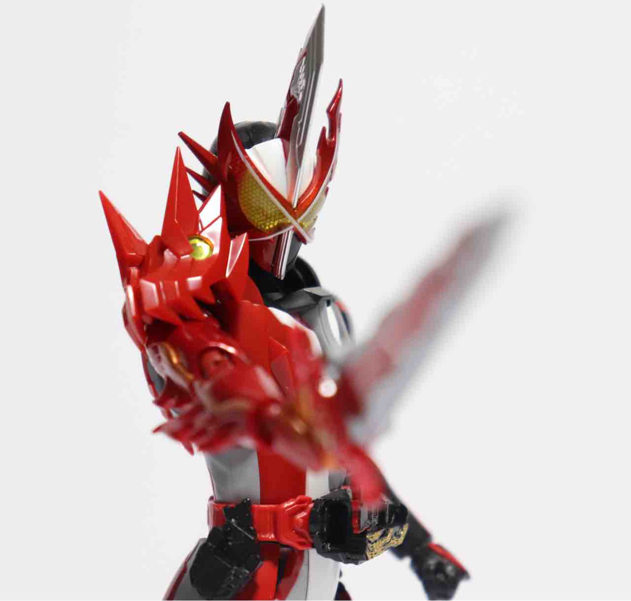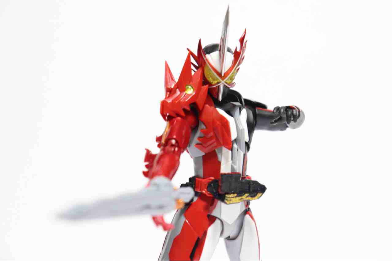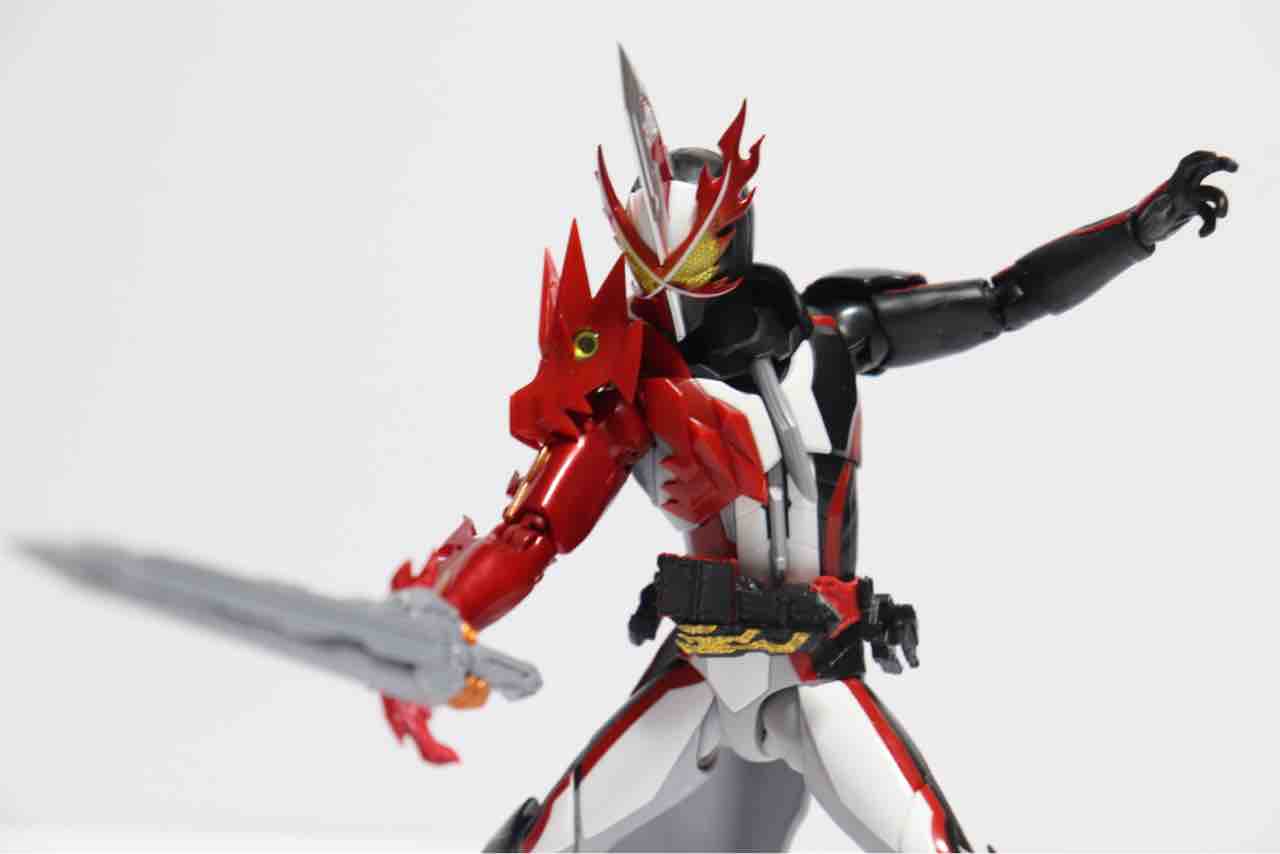 剣をベルトから引き抜いて変身、強制的に変身後の武器とすることで、武器である剣とは切っても切れない関係となってます。なので今回の写真でも全て剣を持たせてあります。武器を持っていないセイバーはセイバーではないと言い切れるほどに剣が身体の一部。